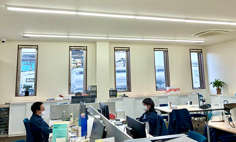 工場や事業所へ燃料の安定供給はもちろん、自動車・工業用の潤滑油やオイルフェンス、吸着マット、アドブルーの販売もしています。