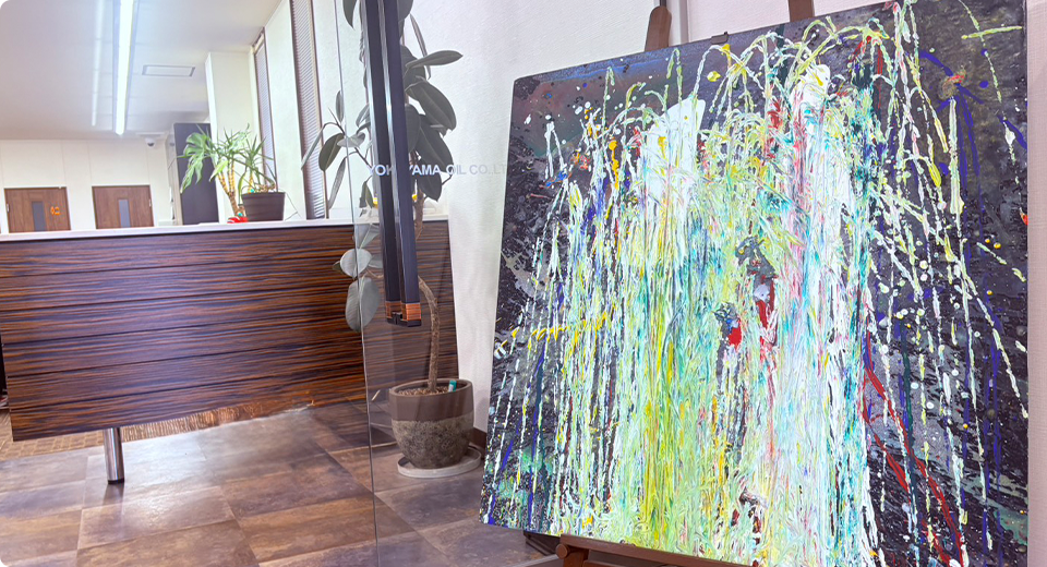 総合エネルギーセンターでは、知的障がいのある方が書いてくれた絵が玄関でお客様をお迎えします。